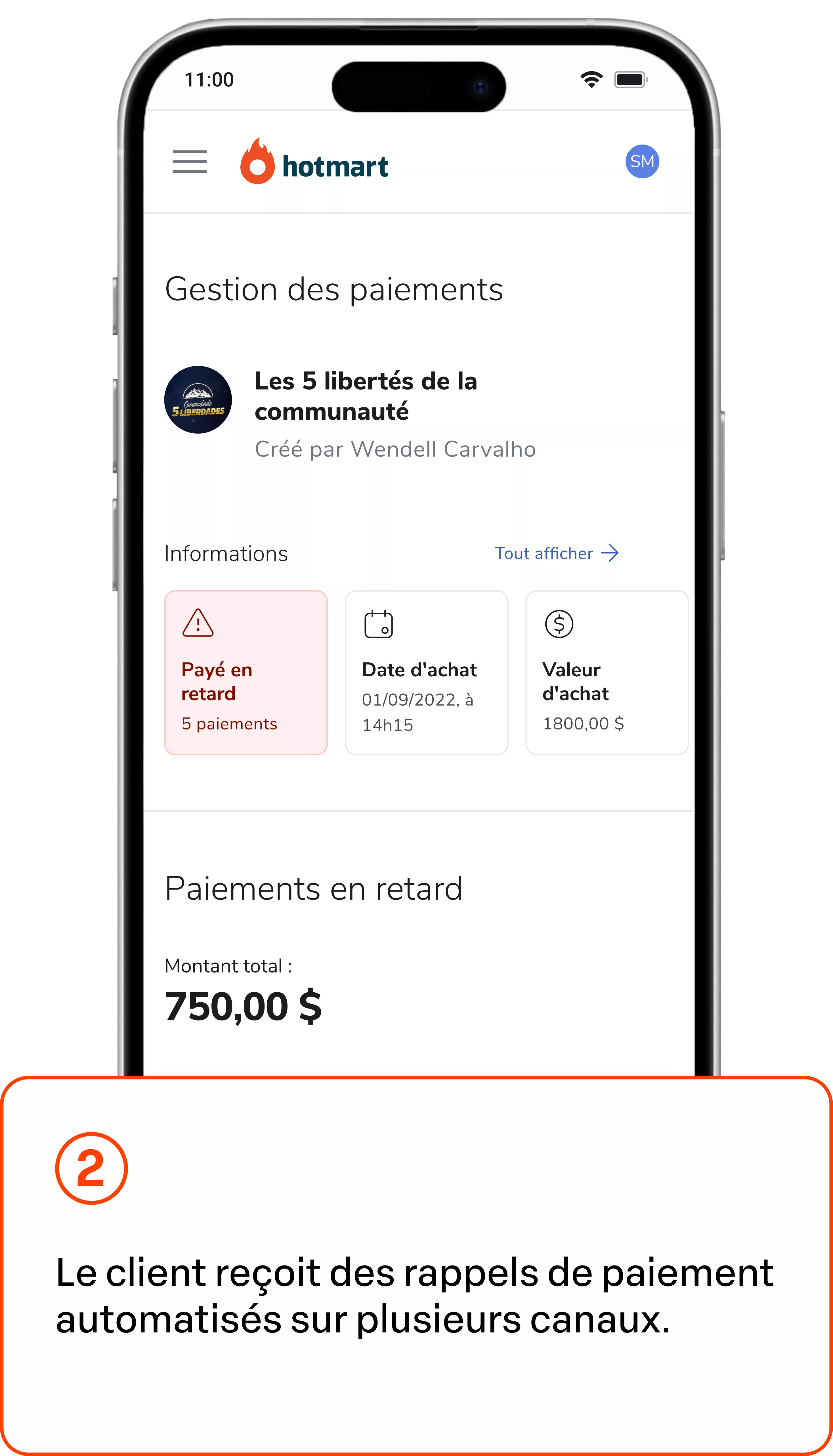Pendant que d’autres poursuivent les retards de paiement, Hotmart agit avant qu’ils ne deviennent des impayés. Nous rappelons, suivons et recouvrons au bon moment — vous ne voyez pas l’effort, vous voyez simplement l’argent arriver sur votre compte.
