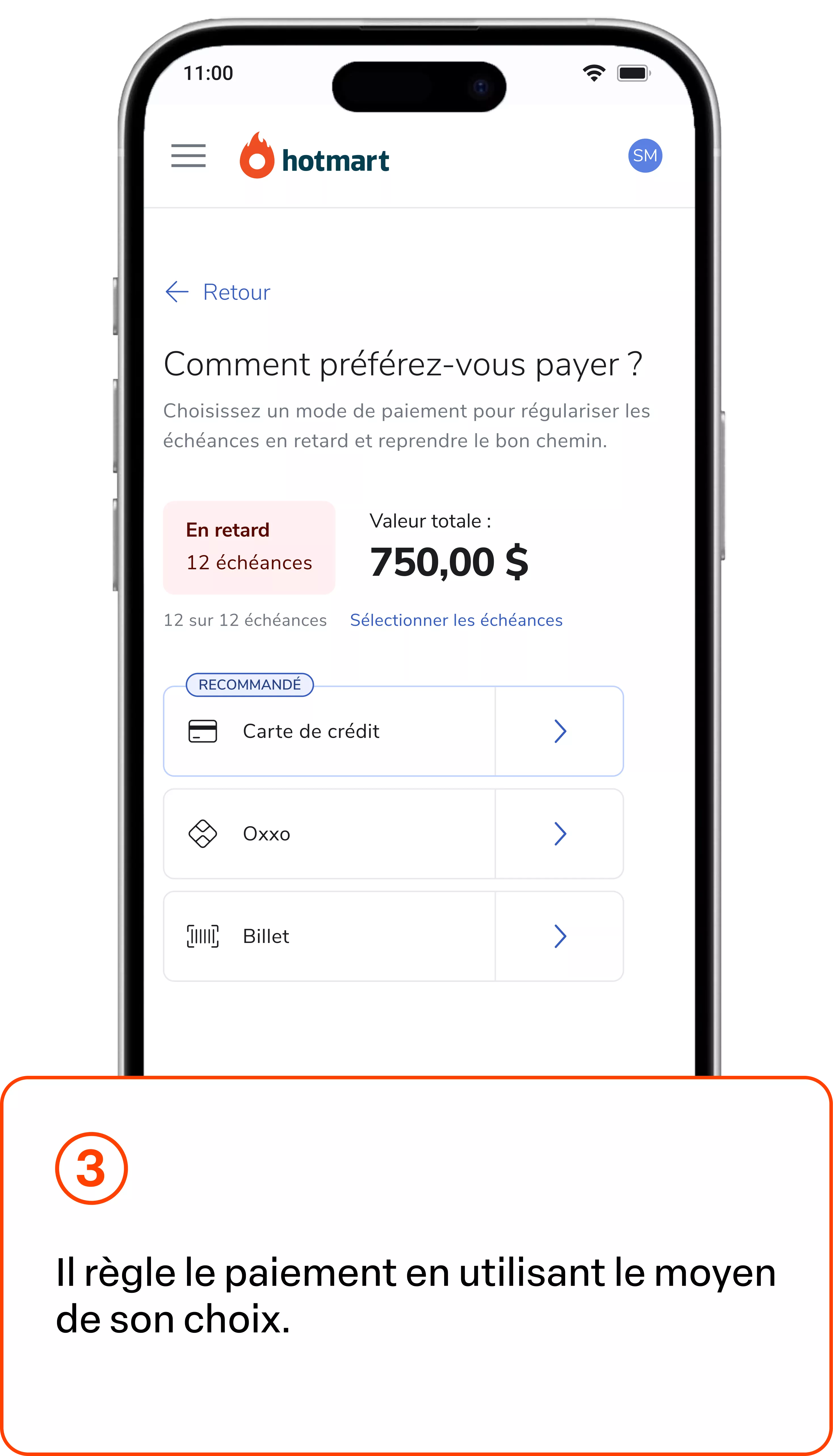 Il s’agit d’un ensemble de solutions créées par Hotmart pour aider à prévenir les impayés et à récupérer les paiements en attente issus de ventes réalisées via Paiement Fractionné.